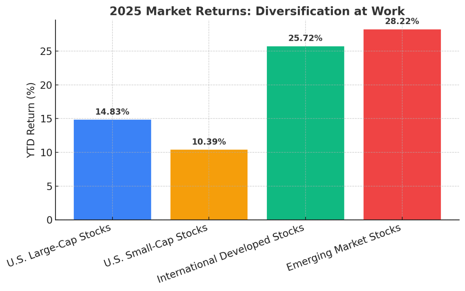 Emerging markets are leading the pack, while the S&P 500 continues to show steady gains. It’s a clear reminder that global diversification remains one of the most effective ways to navigate changing market conditions.